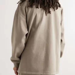 Fear Of God ESSENTIALS Logo-Flocked Cotton-Blend Jersey Mock Neck Sweatshirt – Grey