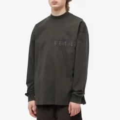 Fear Of God ESSENTIALS Logo-Flocked Full Sleeve T-Shirt – Off-Black
