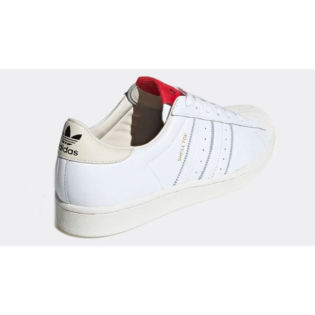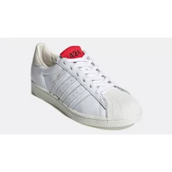 Tieing in neatly with the 50th anniversary of the Superstar, the pair have decided to use the classic silhouette as the base for their latest collaboration. The iconic sneaker is decked out in a clean white and off-white colour scheme, with luxury leather being the main construction material here. Gold-embossed branding is present on the lateral side, while 424’s red logo is showcased at the tongue.