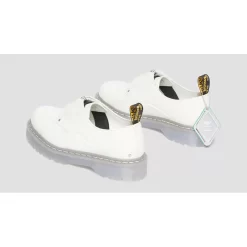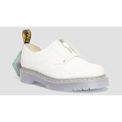 This low-cut 1461 Bex Boot starts out with a smooth Cream-coloured leather that can be buffed to a debonair shine or stylishly scuffed up. The upper features exaggerated stitching, branded embossing and industrial design rivets. This shoe swaps out traditional lacing with a form-controlling front zip that gives it a unique and architectural side profile. An icy, translucent double height bex sole, an AirWear heel loop and a co-branded hang tag finish off the style of this boot.