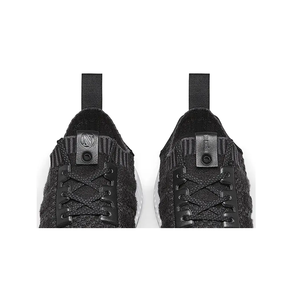 A thick and soft crafted Primeknit material features in black with textured detailing marked throughout. Three-stripes are embossed across the sidewall and the elasticated ankle surround keeps the foot securely locked in place.