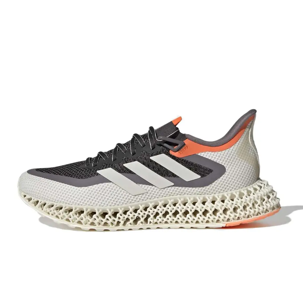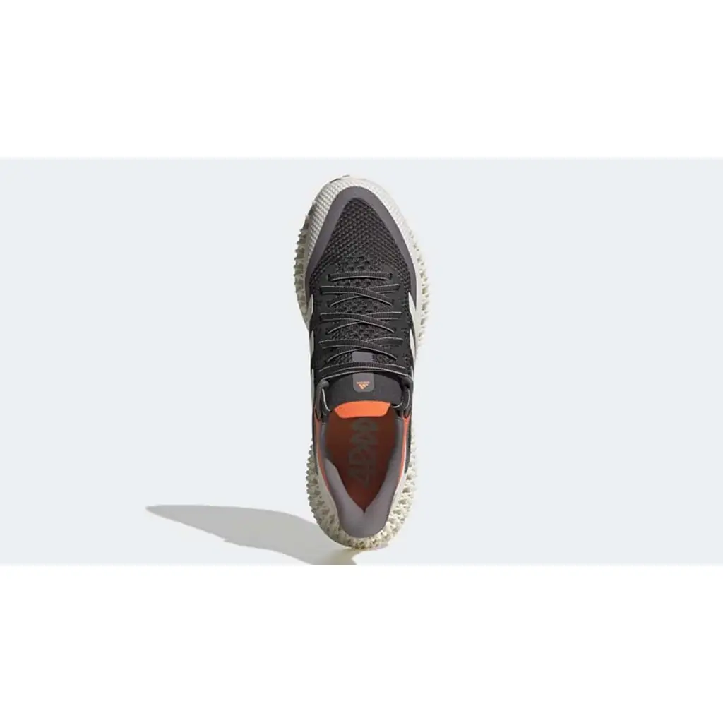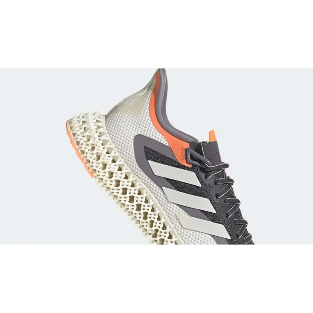 This sustainably made 4DFWD has a “Carbon/ Zero Metallic/ Cloud White/ Beam Orange” colour scheme with a peachy-looking Beam Orange on the tip of the tongue and the collar. The Primeknit upper is Carbon black on the vamp, from the toe box to the tongue bordered by a greyish Zero Metallic accent. The rest of the Primeknit upper wrapping around the toe cap to the heel is Cloud White. The standout detail of this shoe is the Cloud White 3D-printed midsole that’s designed for softer landings and smoother transitions. A full rubber outsole in Cloud White and Beam Orange finishes off the look of this sneaker.