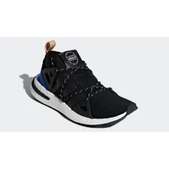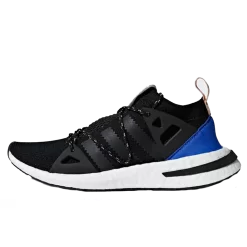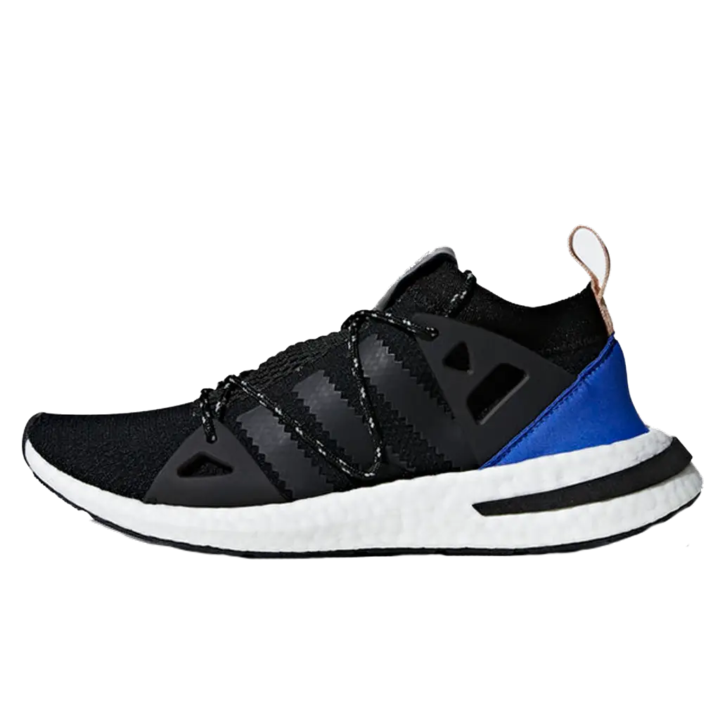 The adidas Arkyn Black is only contrasted by a blue coloured heel panel which sits across the rear. A chunky slab of white coloured Boost also manages to balance the look. Finally, an embroidered logo sits across the tongue which only adds to the exclusivity factor.