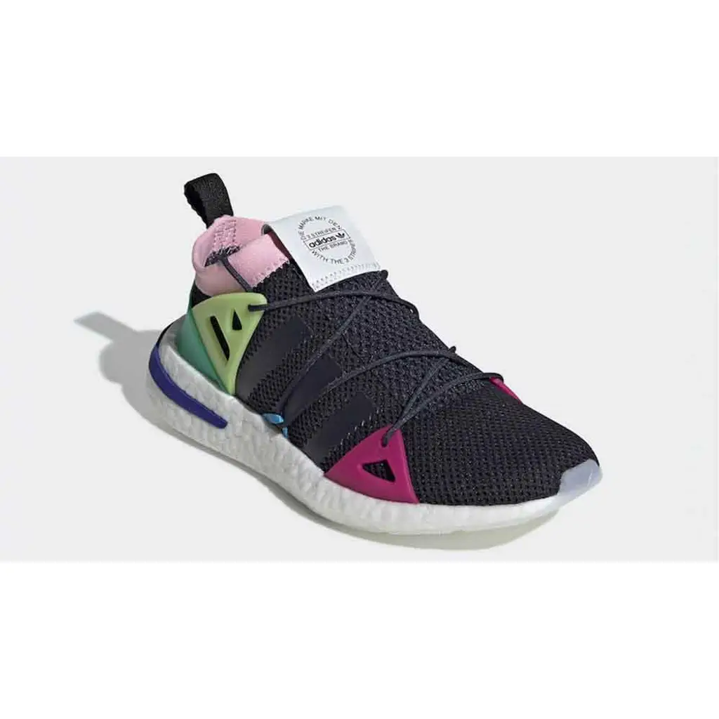 What’s really exciting about the Legend Ink/Legend Ink-True Pink Arkyn are the hits of colour on the heel and forefoot of the shoe. Bold overlays in mint green, pastel pink, hot pink and purple bring some contrast and edge to the sneaker.