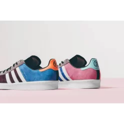 This edition of the Campus 80s turned out to be a unique sneaker with a mixture of vibrant colors across its suede base and leather overlays. The pairs feature a different color pattern in each side which is also detailed with subtle numeral embossing throughout. There is also debossed branding at the heel with additional graphical branding on the insoles. A crisp white sole unit balances the overall look of the shoe. It is finished off with the classic three stripe branding on the sides and additional branding on the tongue.