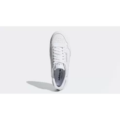 Soft white leather dresses the upper, co-ordinating with a bright white midsole, while a sparkling silver stripe adds contrast across the side panels. Trefoil branding also stands out in a shimmering tone on the sidewalls and heel.