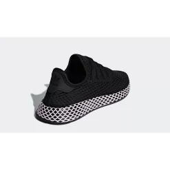 The adidas Trefoil logo appears across a matching black heel patch, while a black and lilac EVA midsole provides signature adidas cushioning for every step. The Deerupt’s mesh construction also increases flexibility, ensuring a snug and comfortable fit.