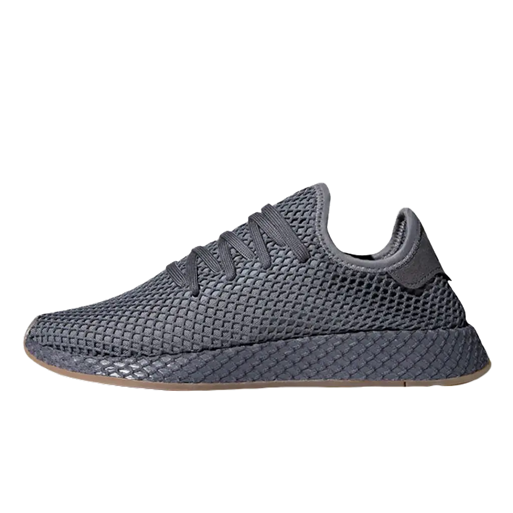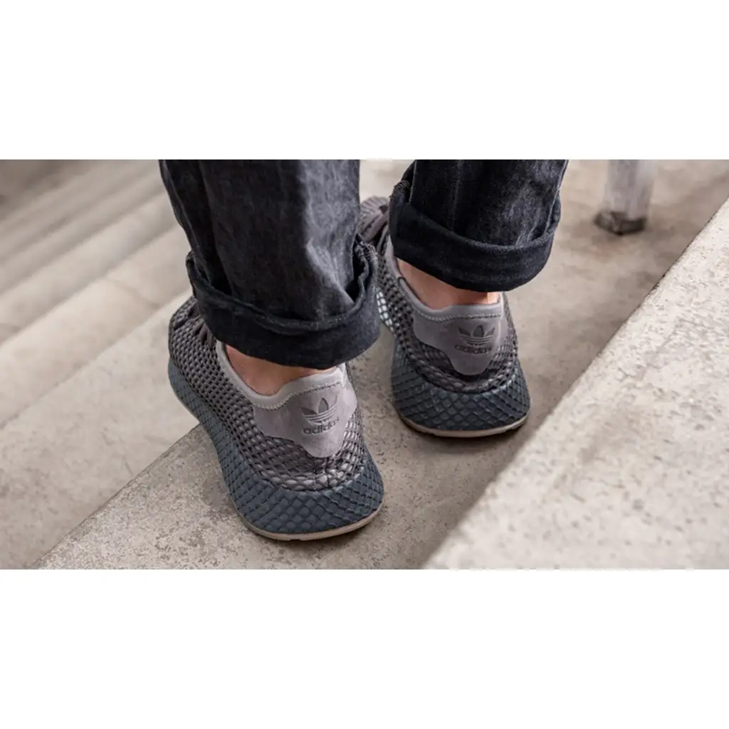 The only contrast to the adidas Deerupt Black Grey comes in the form of that sticky gum outsole underfoot. This promises the best in lock-down support, keeping you glued to all surfaces.