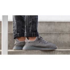Diamond knitted mesh extends across the entire upper of the Deerupt. This unique feature even extends onto the midsole underfoot. The tonal colourway is complimented by monochromatic details throughout. That includes a set of black laces as well as adidas Originals branding which is stamped to the heel.