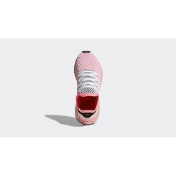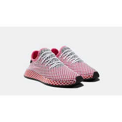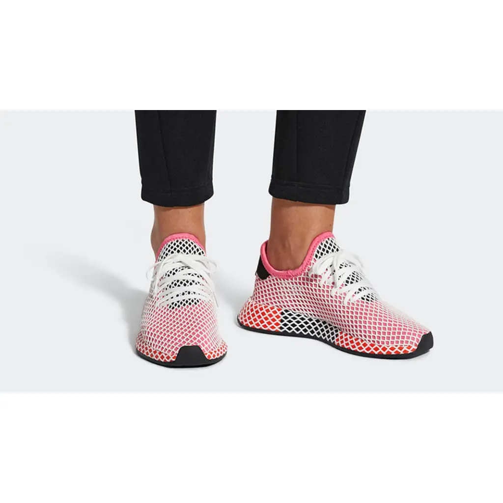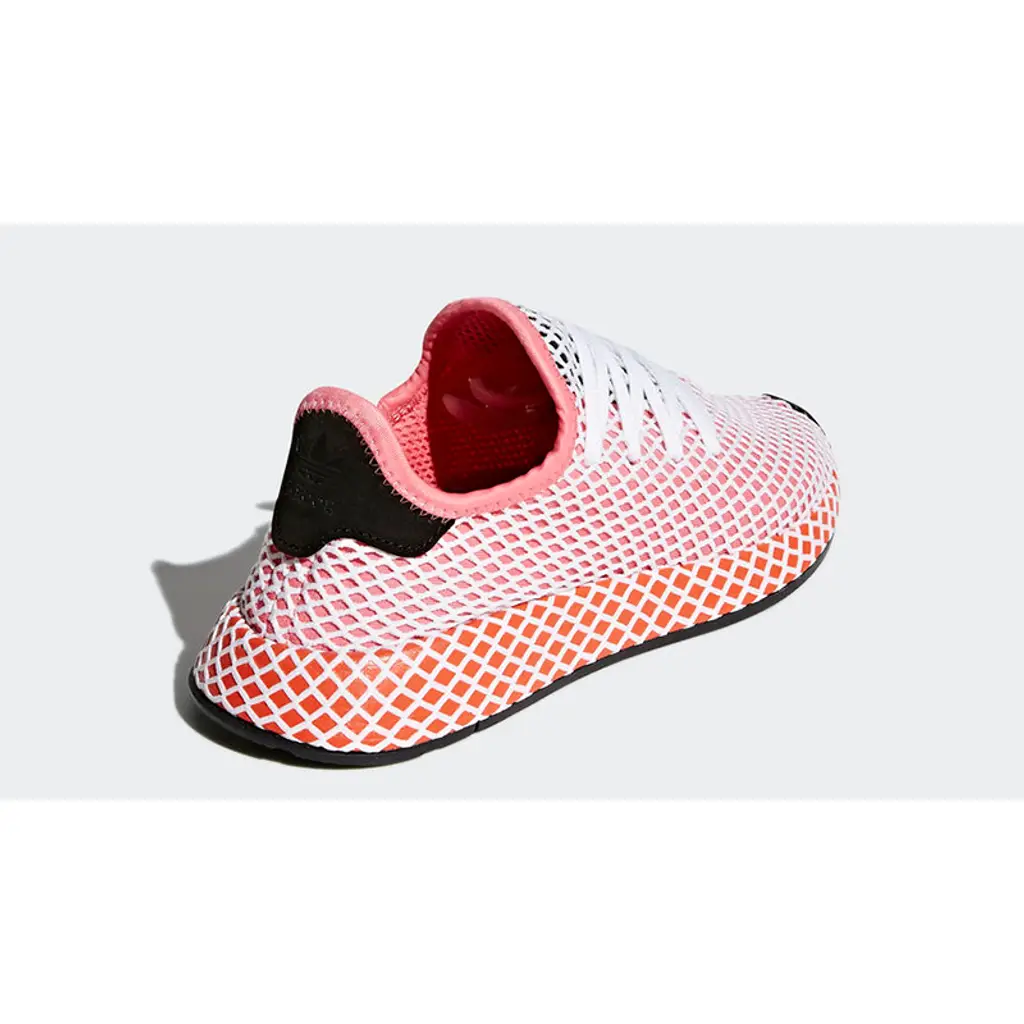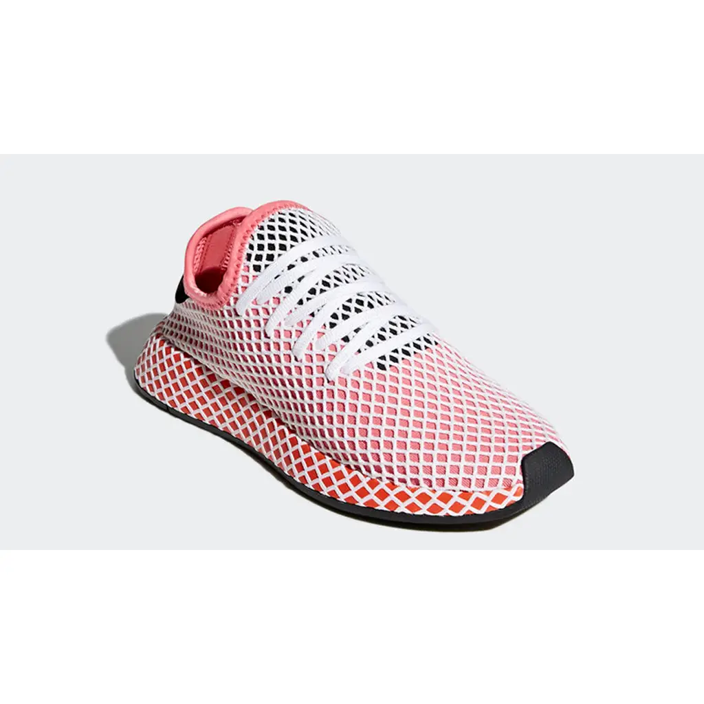 Here we take a closer look at the adidas Deerupt Red Women’s. adidas’s new pack is designed to stand out, adorned with white diamond netted mesh across the upper. This red women’s rendition features cute ‘Chalk Pink’ and orange highlights to give the runner a summer-ready look.