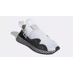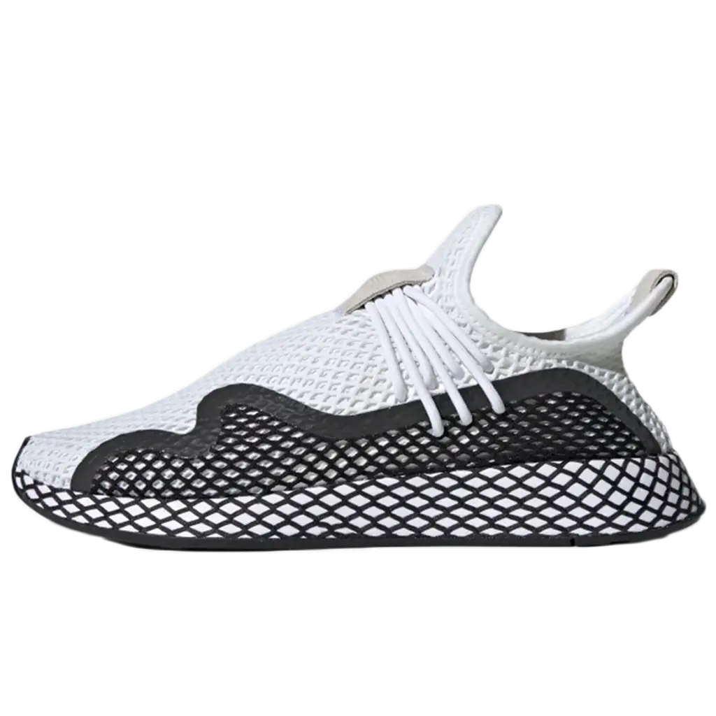 A chic look transforms the adidas Deerupt S Black White. Bringing a fresh interpretation to adidas’ lifestyle shoe which first arrived last year, this rendition switches things up with a one of a kind waved accent and reinvented lacing system.