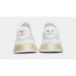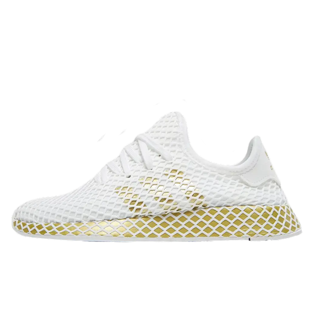 Webbed white mesh covers covers the entirety of the upper and midsole for extra support, while gold hits the midsole, Trefoil logo, and 3-Stripes branding for a reinvented look. In terms of comfort, the Deerupt is fitted with a lightweight EVA midsole and OrthoLite sockliner for increased performance and cushioning capabilities.