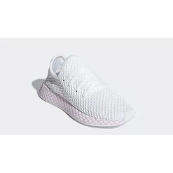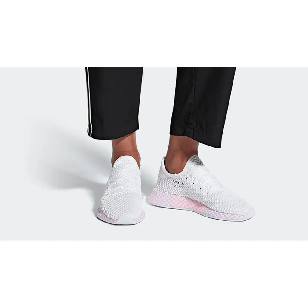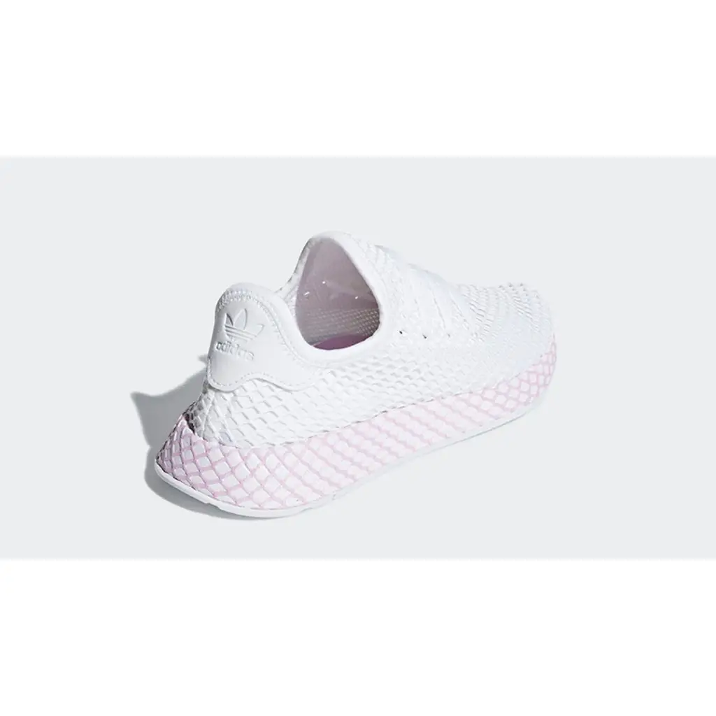 The adidas Trefoil logo appears across a matching white heel patch, while a stunning white and pink EVA midsole provides signature adidas cushioning for every step. The Deerupt’s mesh construction also increases flexibility, ensuring a snug and comfortable fit.
