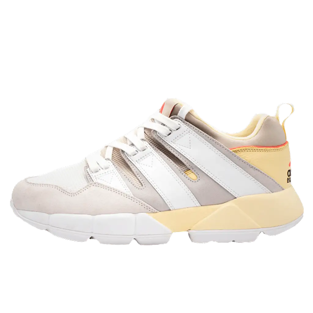 A shoe that first hit the market in 1995, the EQT Cushion 2 Beige is painted in a summer ready white and beige colourway. Dressed in luxe leather and breathable mesh panels, a chunky rubber midsole is present down below, while a neoprene sockliner give its a comfortable and versatile fit. To round off the unique design, a massive adidas logo in red hits the heel, completing the look.