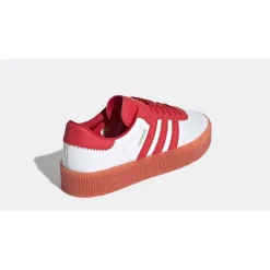 Here we take a closer look at the adidas Fiorucci Sambarose Red White. This fresh take on the flatform has been created in collaboration with beloved label Fiorucci and will be arriving alongside a range of matching apparel.