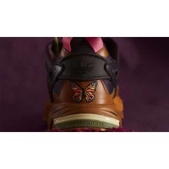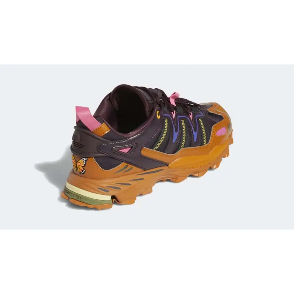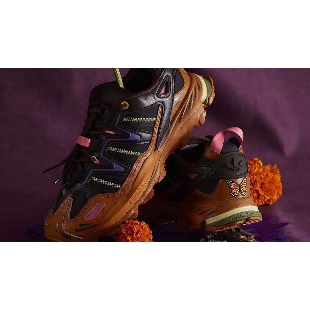 Go places in style with the adidas Hyperturf Dia De Muertos Mole! This iteration is part of the designs made by the German sportswear brand to celebrate the Day of the Dead 2022. It’s inspired by the traditional Mexican cuisine sauce called Mole. The base, leather overlays, tongue and laces take a cue from the dark brown colour of the sauce. Meanwhile, the vibrant orange mudguard and the sole unit with Adiprene+ cushioning are likely meant to represent the Mexican rice traditionally served with Mole. Yellow zigzag stitches, touches of pink and purple as well as green at the heel complete this special edition of the adidas Hyperturf.