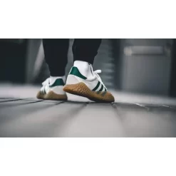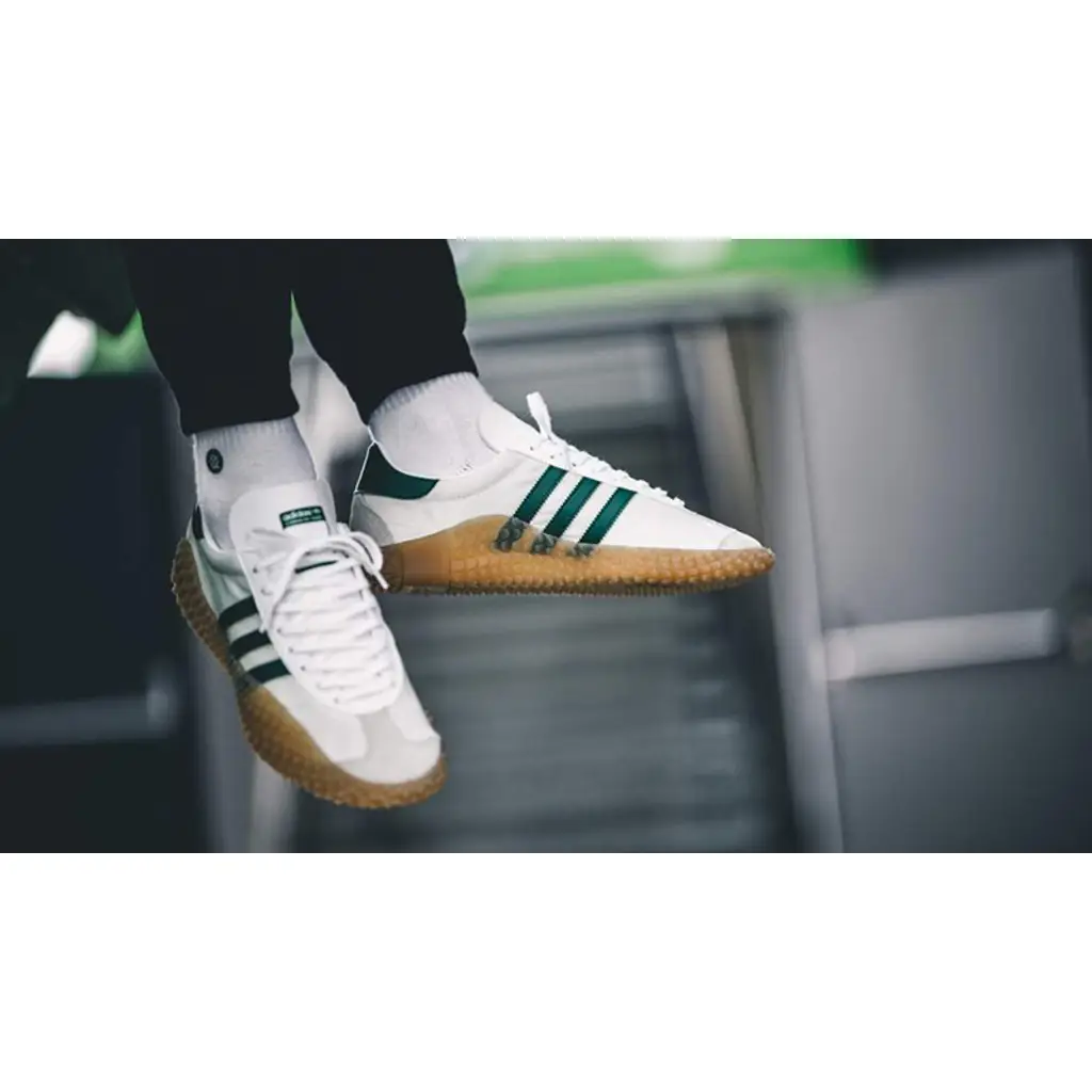 The sneaker dons a classic white and green palette on a nylon, suede and leather upper. Serrated Three Stripes branding and retro adidas Original tongue branding add some old-school detailing, all of which is capped off with a translucent gum rubber sole unit.