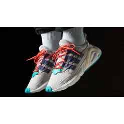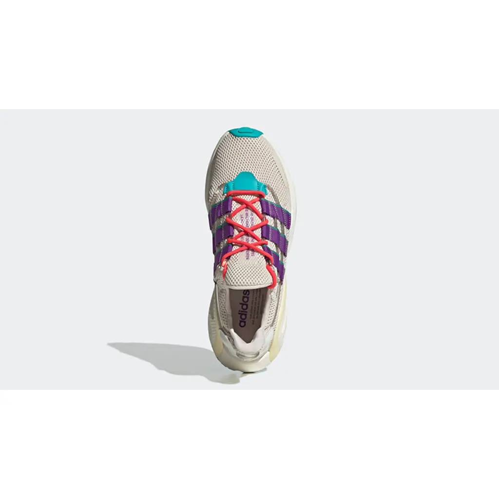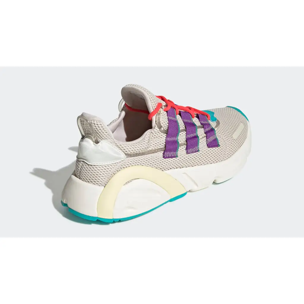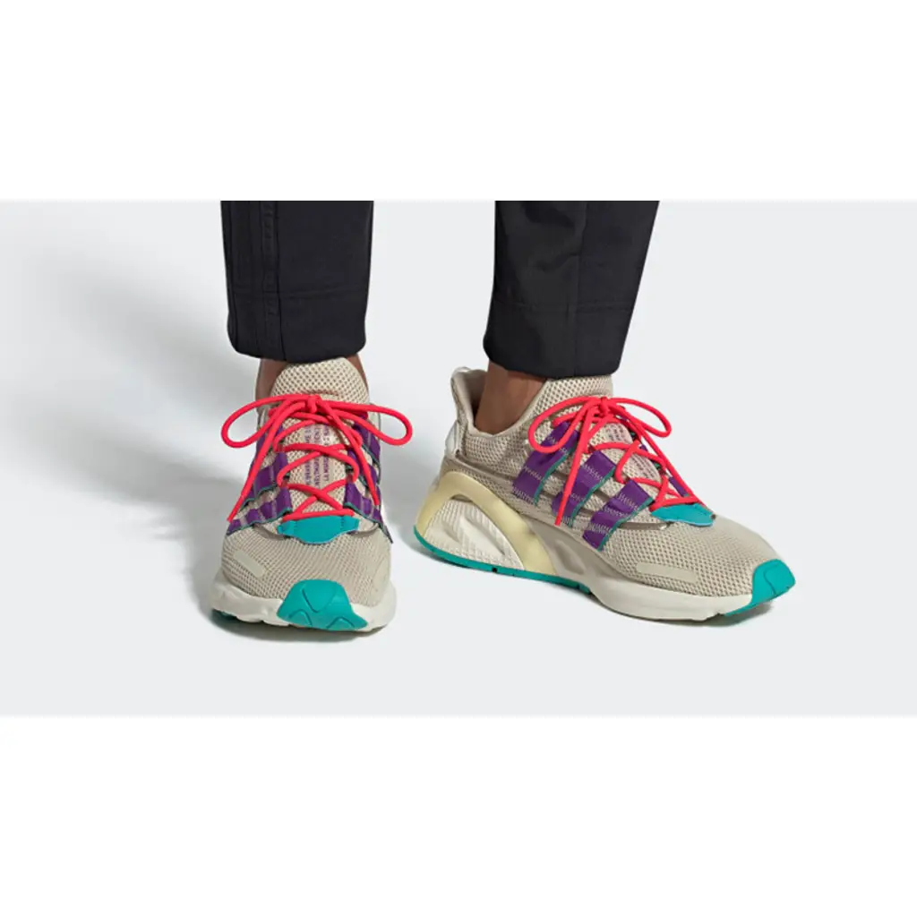 Featuring an extra thick adiPRENE midsole for additional comfort and a smoother stride, the adidas LXCON Clear Brown Active Purple Shock Red is seen here in an insane colour palette. Coloured primarily in a light brown hue, accents of purple, red, and teal feature throughout for a pop of contrast in an otherwise muted colourway. Three ribbons make up the unique lacing system, which is held together by a series of transparent pipes. To round it all off, a breathable knit upper completes the design.