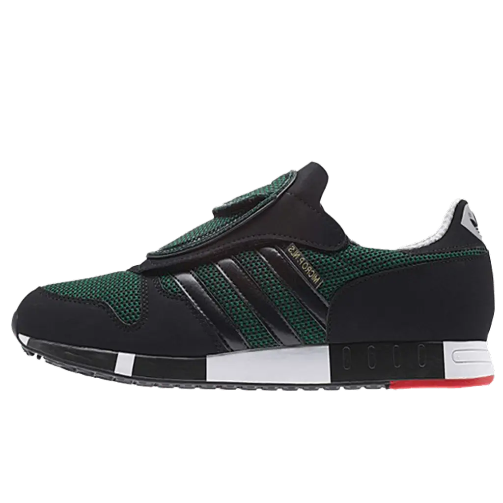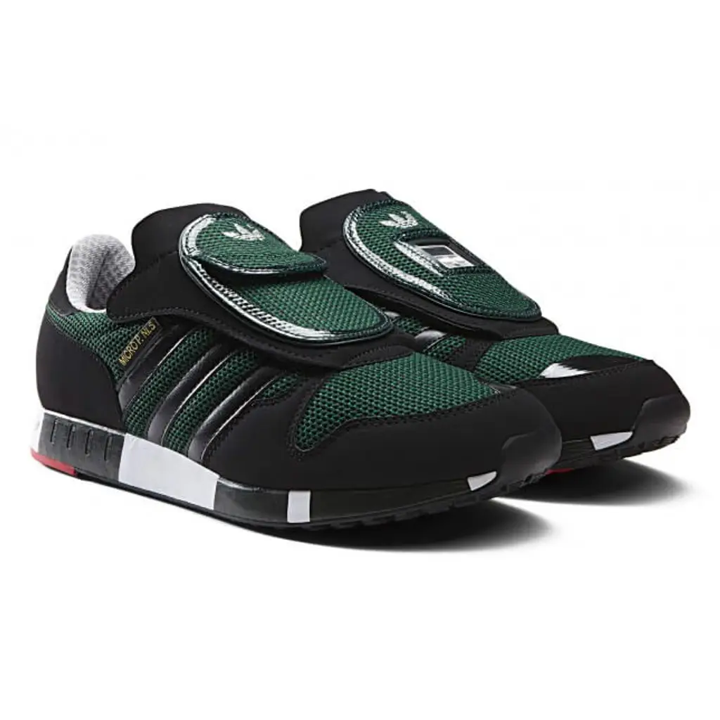 This edition of the adidas Micropacer is highlighted in a Jungle Ink and Core Black combined colourway. This all new colourway is a tribute to the original 1984 edition. It features a textile upper in jungle ink with matching core black suede overlays. There is the iconic three stripes in core black with additional branding on the tongue and heel tab. There are micro-perforations which ensures optimum breathability. The pair is finished off with a colour blocked midsole in black and off white and a hard grip rubber sole, which provides added traction.