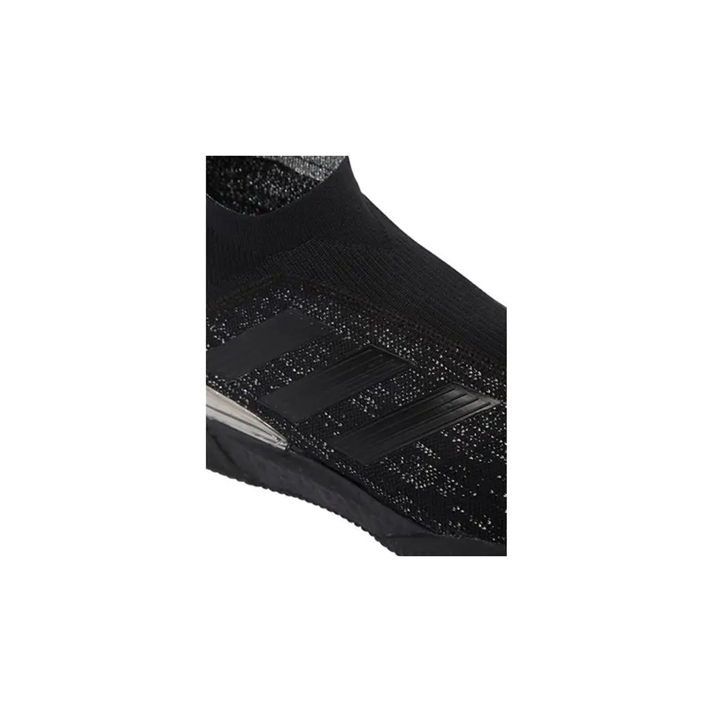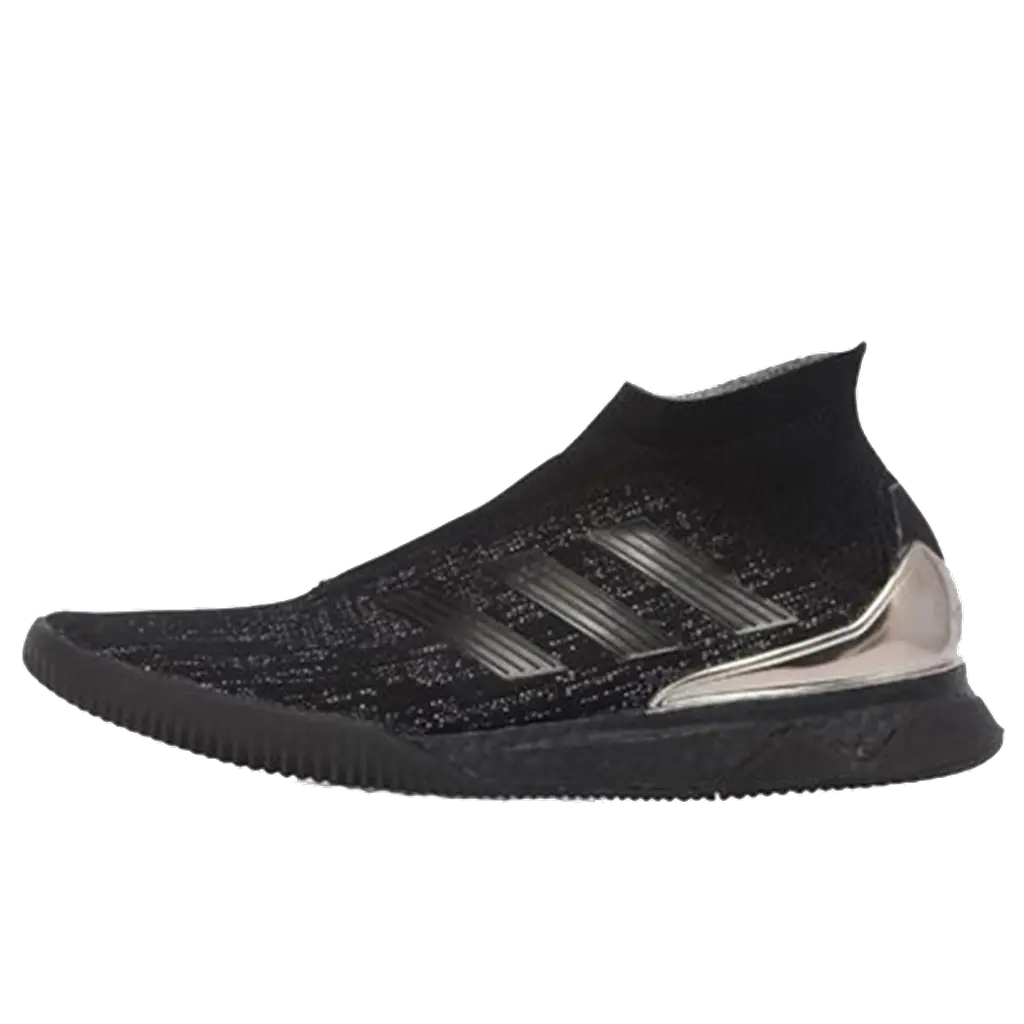 The adidas Nemeziz Predator Tango 18+ TR Black is finished off with a patent silver overlay across the heel. This is the only contrast to that dark and understated upper.