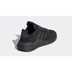 Firstly, a robust and chunky slab of Boost sits underneath the Nite Jogger. On this pair, it looks especially sleek in the same tonal black as the upper. With the same shade extending across that nylon material, this is one versatile trainer. Wear these with just about anything from thick joggers to cotton chinos or shorts.