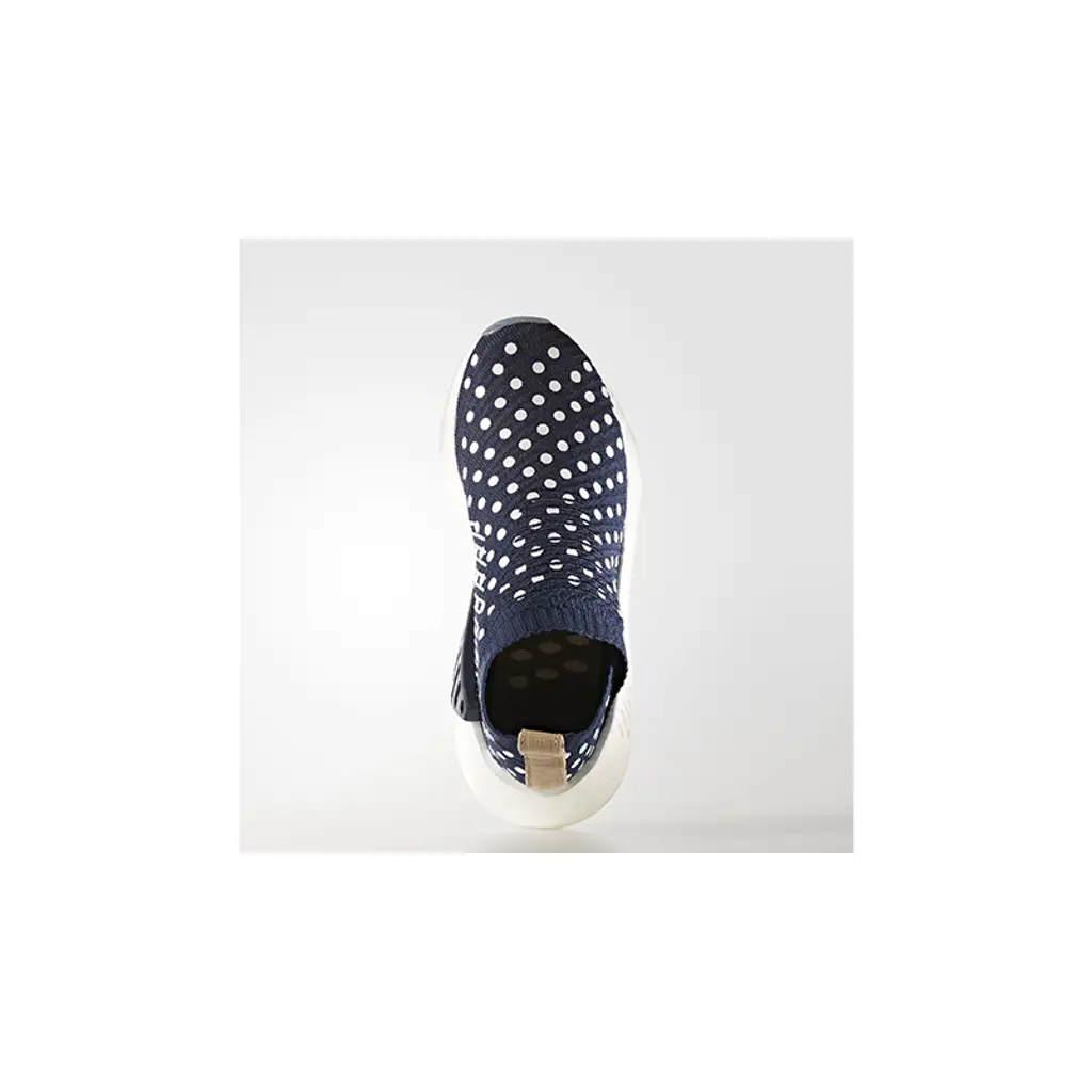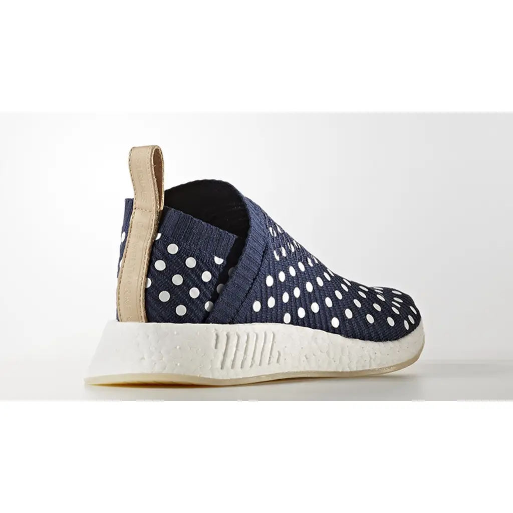 A full Polka dot print scales the shoe from heel to toe. These feature in a contrasting shade of white against an all navy upper. Most interesting about this newly debuted NMD CS2 is the overlapping construct at the ankle surround. It delivers even more lifestyle appeal, complimented by a textured imprint across the forefoot.