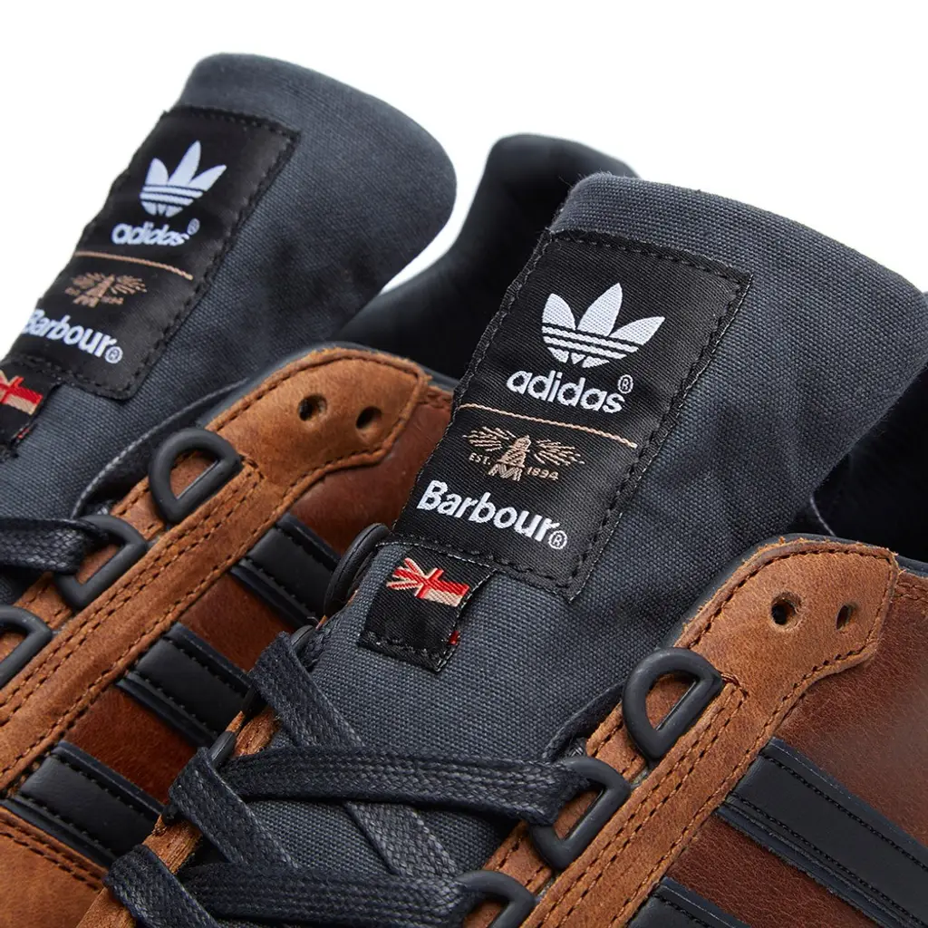 This premium redesign features a waxed cotton tongue and aged tan upper leather. It also includes lugged trail sole with webbing decal and dual branding of adidas x Barbour Logo Tag on tongue and insole. This limited edition pair also features beautiful synthetic lining. The shoe is finished with rubber EVA out-sole unit.