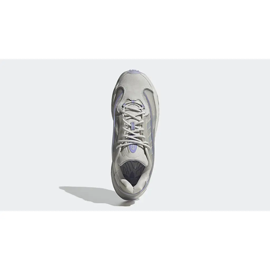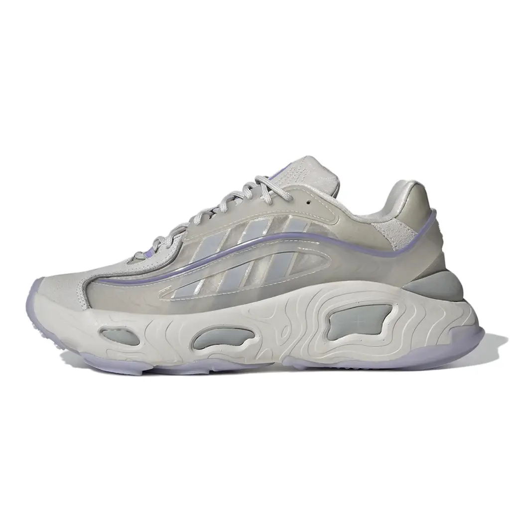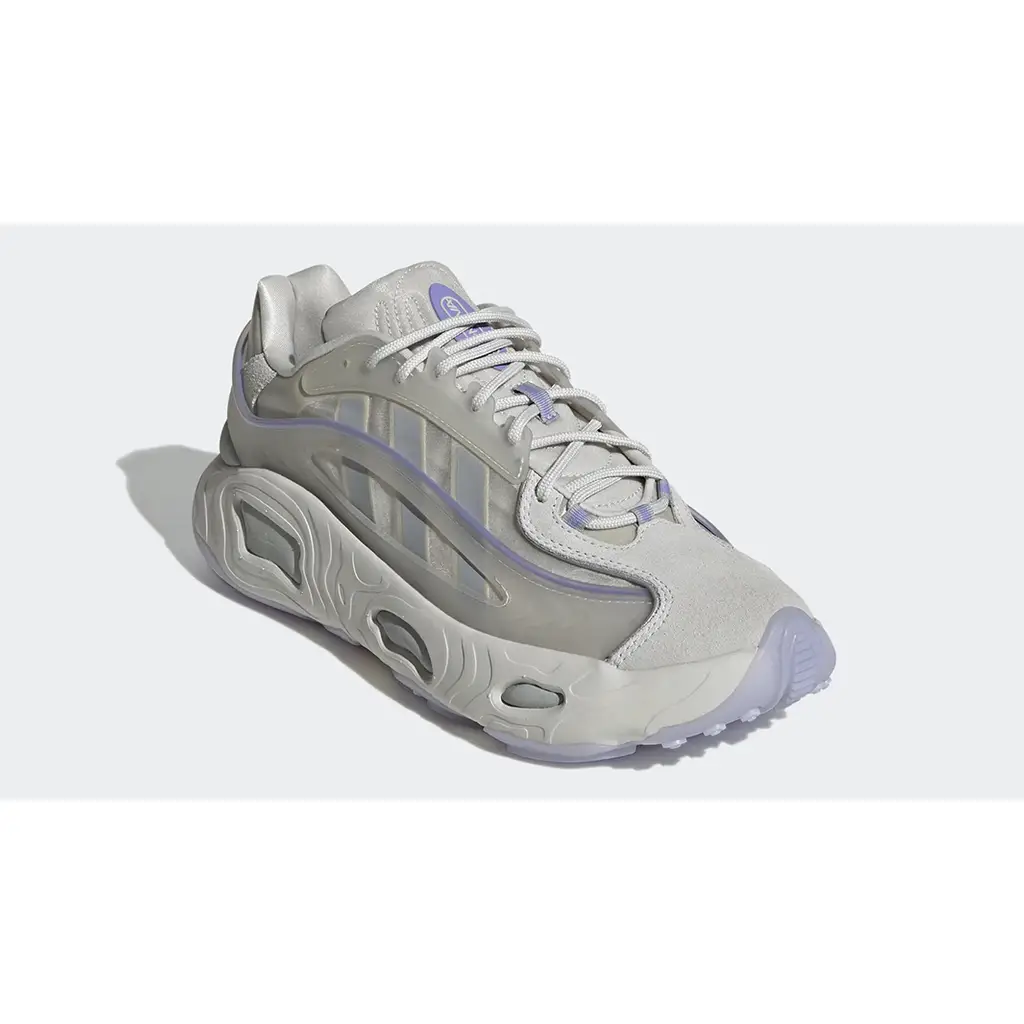 This Oznova has a “Dash Grey/ Grey One/ Halo Silver” colour palette with touches of purple. The layered upper mixes suede, synthetic textile and semi-translucent rubber creating a futuristic look. The toebox is lined with reflective piping while a wavy purple accent encircles the entire shoe. A vertical Oznova-branded oval TPU tongue tab complements the icy purple Three Stripes on the medial and lateral quarters. The Adiplus-enhanced midsole with irregularly-shaped cutouts and a semi-translucent purple rubber outsole complete the look of these kicks.