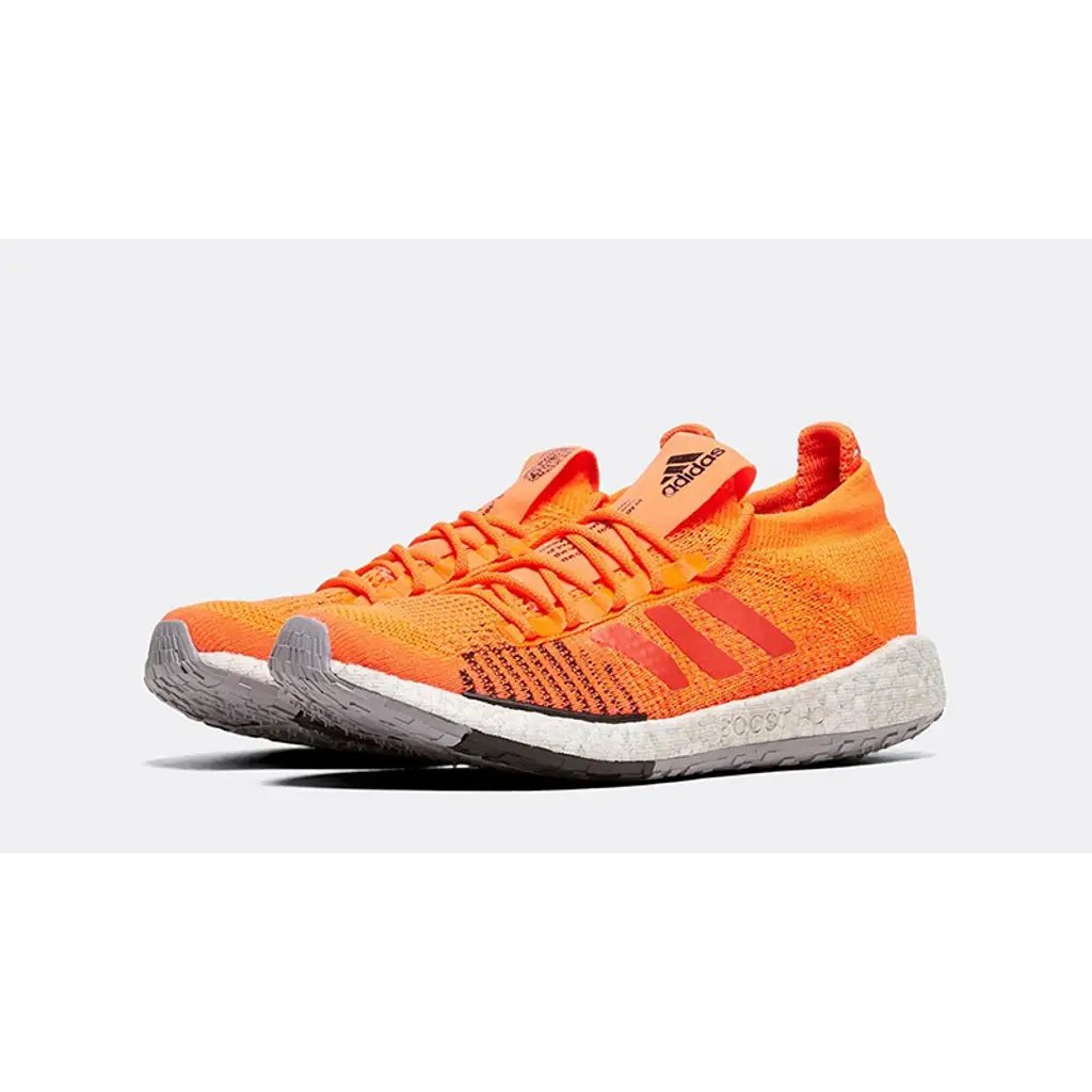Made with the feedback of runners from all around the globe, the PulseBoost HD Solar Red is crafted from the all new Adapt Knit for a comfortable sock like fit wherever you go. Painted in a striking orange palette, red Three Stripe branding hits the lateral and medial side panels for a very subtle pop of contrast.