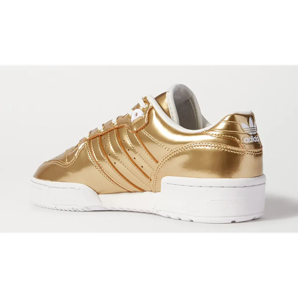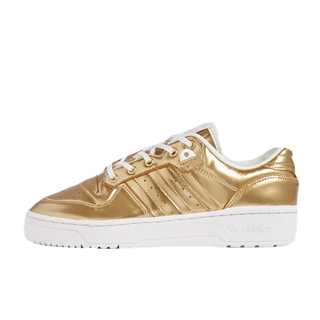 Take to the streets or the dancefloor in both comfort and style with the adidas Rivalry Low Metallic Gold decked out in the shiniest gold textile that is sure to turn heads!