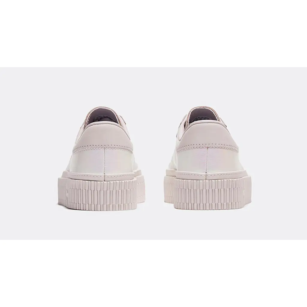 The rest of the sneaker arrives coloured in white, including the platform style midsole that’s chunky and perfect for pairing with any outfit for a chic look. Small indented lines work around the heel with the classic trefoil logo embossed onto the lateral side of the midsole.