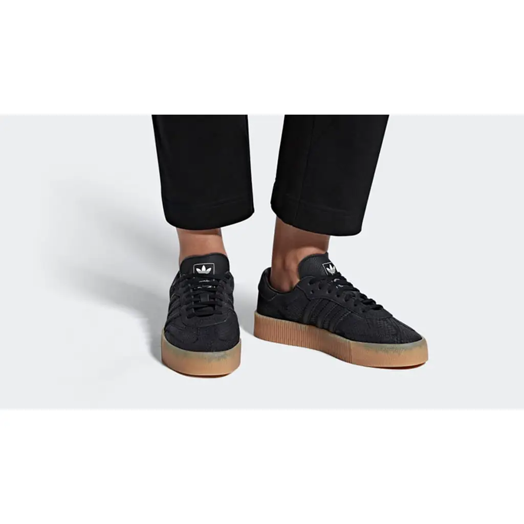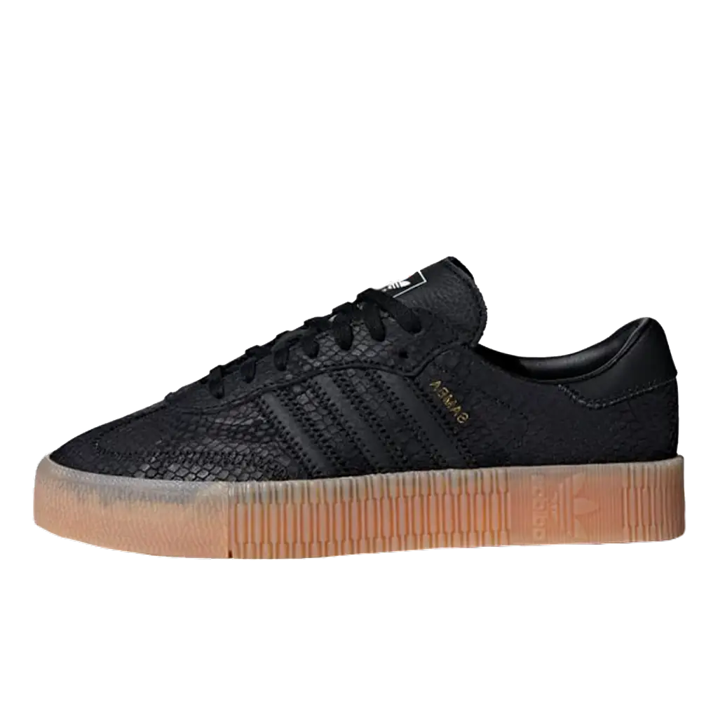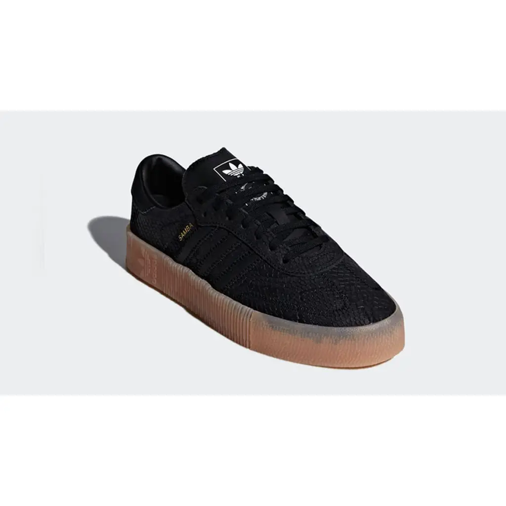 Platform sneakers are back thanks to the resurgence of ’90s fashion, so now is the perfect time to get your hands on the 3 cm platform outsole showcased by the adidas Sambarose Black Gum. Adding extra style credentials, this pair is decorated with a chic snakeskin-embossed leather upper.