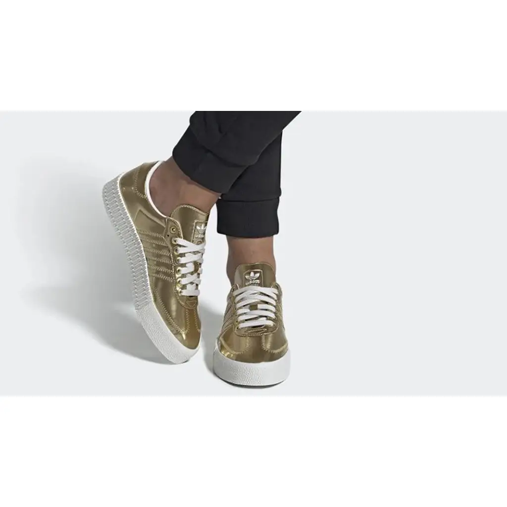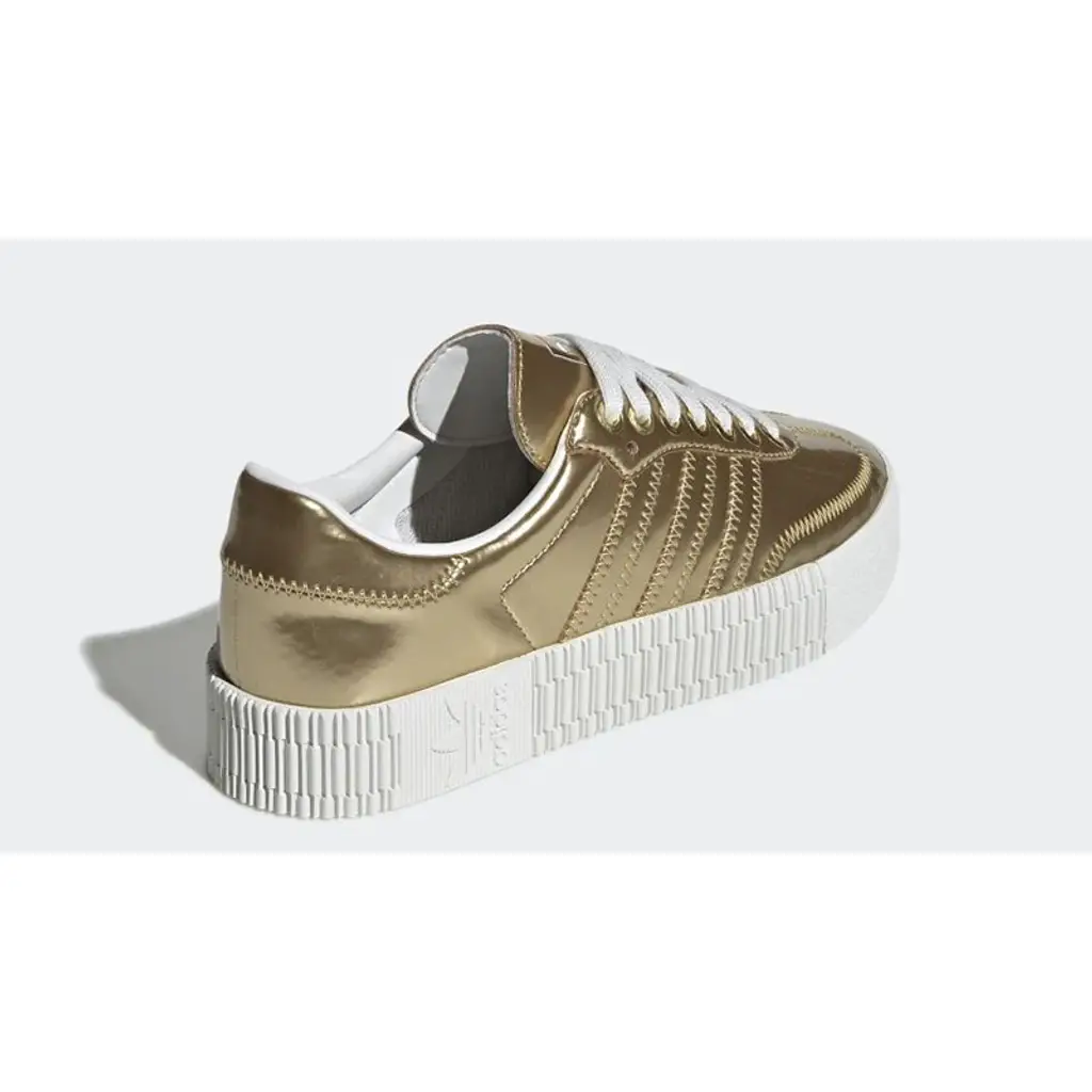 Go all out this season and cop this standout women’s adidas Sambarose Metallic Gold! It’s available to shop today via the retailers listed on this page.