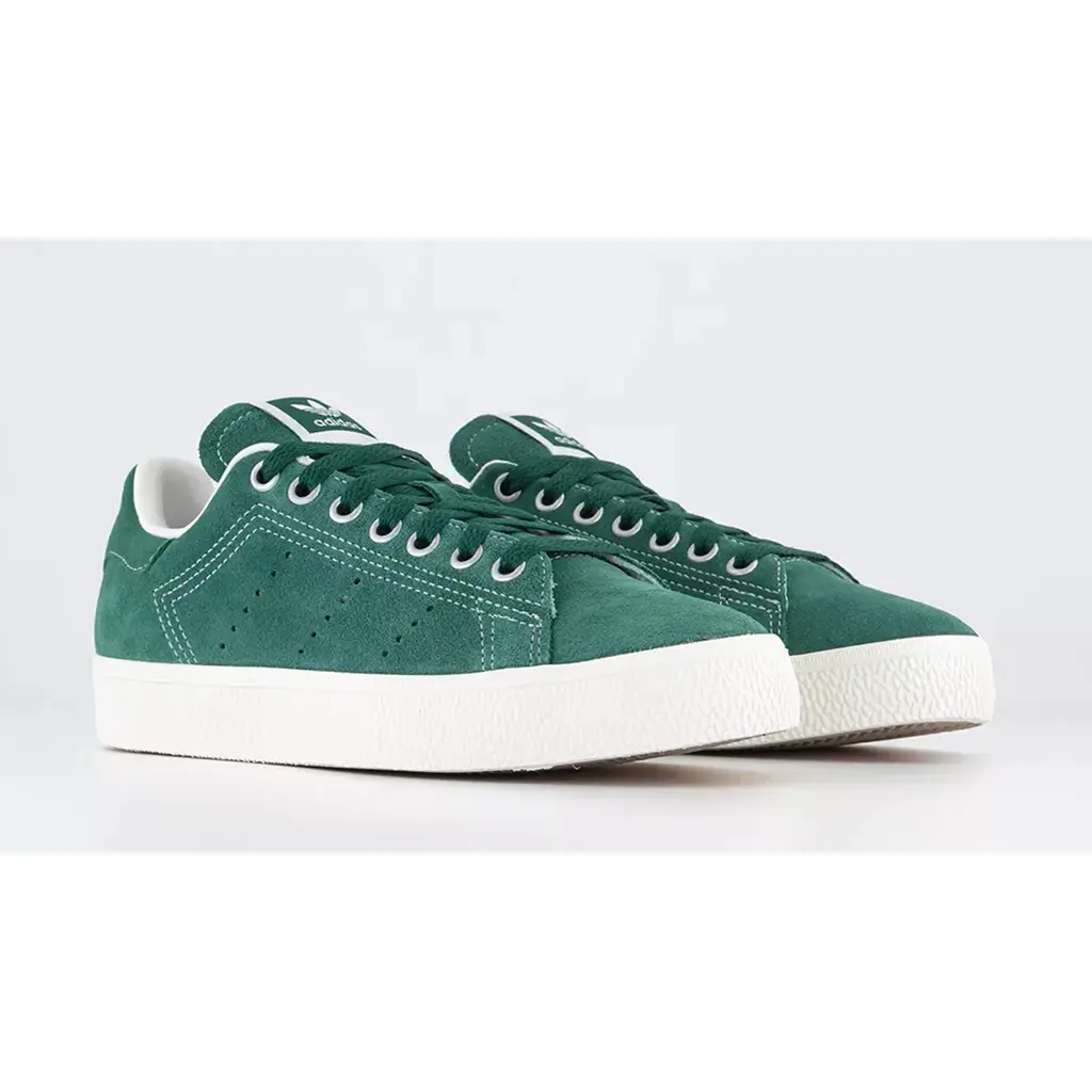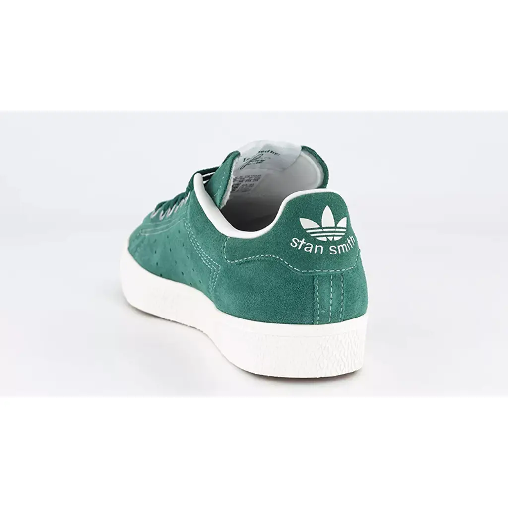 This Stan Smith swaps out its usual pristine white leather construction with an all-suede upper in the titular collegiate green, from heel to toe. Exposed white stitching creates a deconstructed aesthetic and colour contrast. As with other Stan Smith models, in lieu of jagged-edged Three Stripes are three rows of perforations along the medial and lateral mid-panels. adidas branding stands out in white on the collegiate green tongue labels and the green suede heel tabs. A white rubber cupsole caps off the style of this sneaker.