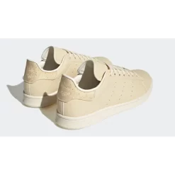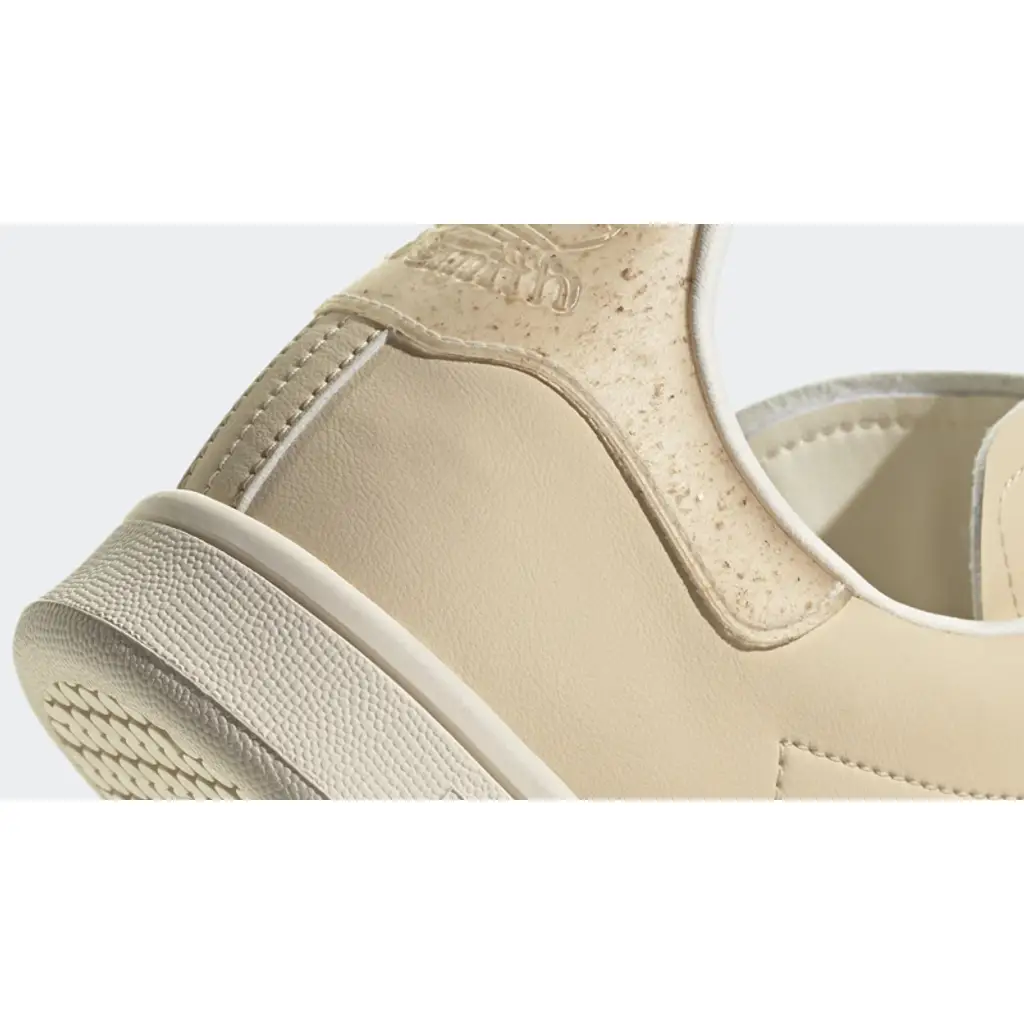 This Stan Smith has a sustainably constructed upper in sand strata using vegan materials and at least 20% recycled content. As is the tradition of the Stan Smith model, three rows of perforations on the medial and lateral side stand in for the brand’s iconic Three Stripes. The heel tabs feature semi-translucent and speckled TPU in Sand Strata while the tongues show off stylish embossed adidas branding. An Ecru Tint sole unit with a studded tread completes the look of this shoe.