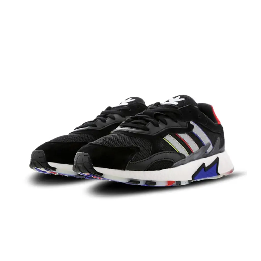 Metallic coated three stripes feature to the sidewall and colourful piping adds to the vibrant aesthetic. To complete the look, adidas Originals branding is planted across the tongue and a unique cut away overlay sits across the midsole.