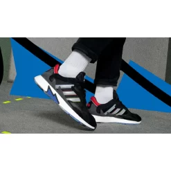 A combination of premium suede and leather covers the upper of the adidas Tresc Run. This colourway sports a black theme, contrasted by a white midsole underfoot. This is the only contemporary portion of the shoe with Boost technology that keeps you glued to all surfaces. As you can imagine, this is one of the most comfortable trainers on road.