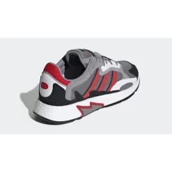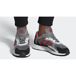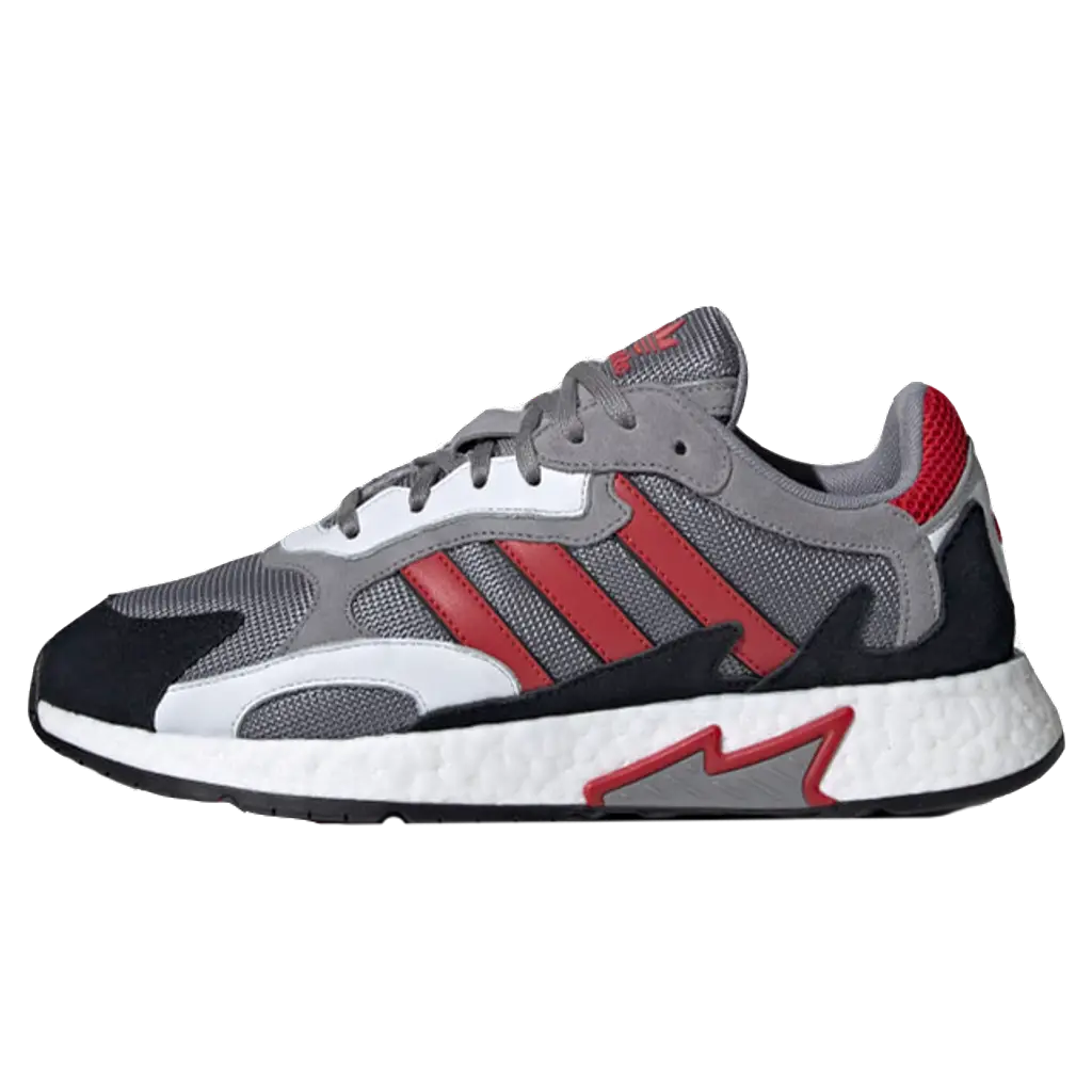 Crafted from luxe leather, supple suede, and breathable mesh, the adidas Tresc Run Grey Scarlet Core Black is the perfect combination of classic and contemporary, featuring a tastefully retro design with modern technology, including a full-length Boost midsole. Painted in a grey and white colour scheme, hits of red hit the Three Stripe branding, tongue, and heel for a pop of contrast. To round it all off, a flame motif graces the lateral and medial sides, completing the design.
