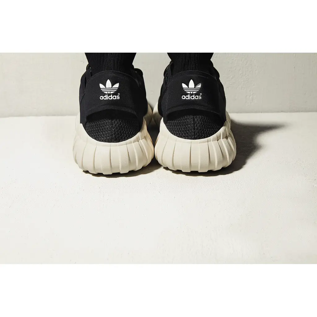 This edition of the Tubular Doom is dressed in a black and white based colourway. The shoe features all the details of the grey edition. As the name suggests, the pair is crafted from Primeknit materials and the entire upper is covered in black. The overall design is inspired by the infamous Y-3 shoe which are very popular among the fans. There is minimal branding on the tongue tag and back heel area and the pair is finished off with a white Tubular sole unit.