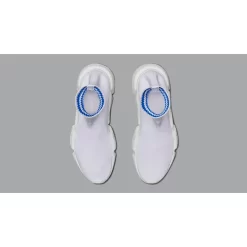 Comfort and style seamlessly meet each other in the adidas x Balenciaga Speed White Blue! Featuring a sock-like fit and design, this Italy-made shoe comes with a technical 3D knit colourless upper that delivers a cosy feel. Adding contrast to the white base are the blue Three Stripes at the top of the ankle and the embroidered adidas logo and “balenciaga” branding. Further down, this piece boasts a flexible and chunky moulded sole with a “No Memory” sole technology for maximum comfort.