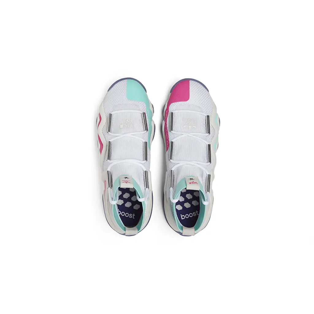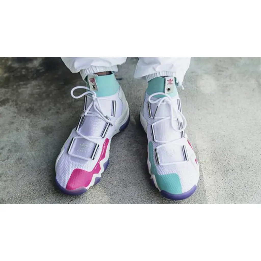 This Nice Kicks rendition looks especially unique thanks to the bold hits of colour which feature to the elasticated ankle surround and midsole. Turquoise and pink offers a stark contrast to that white coloured mesh.