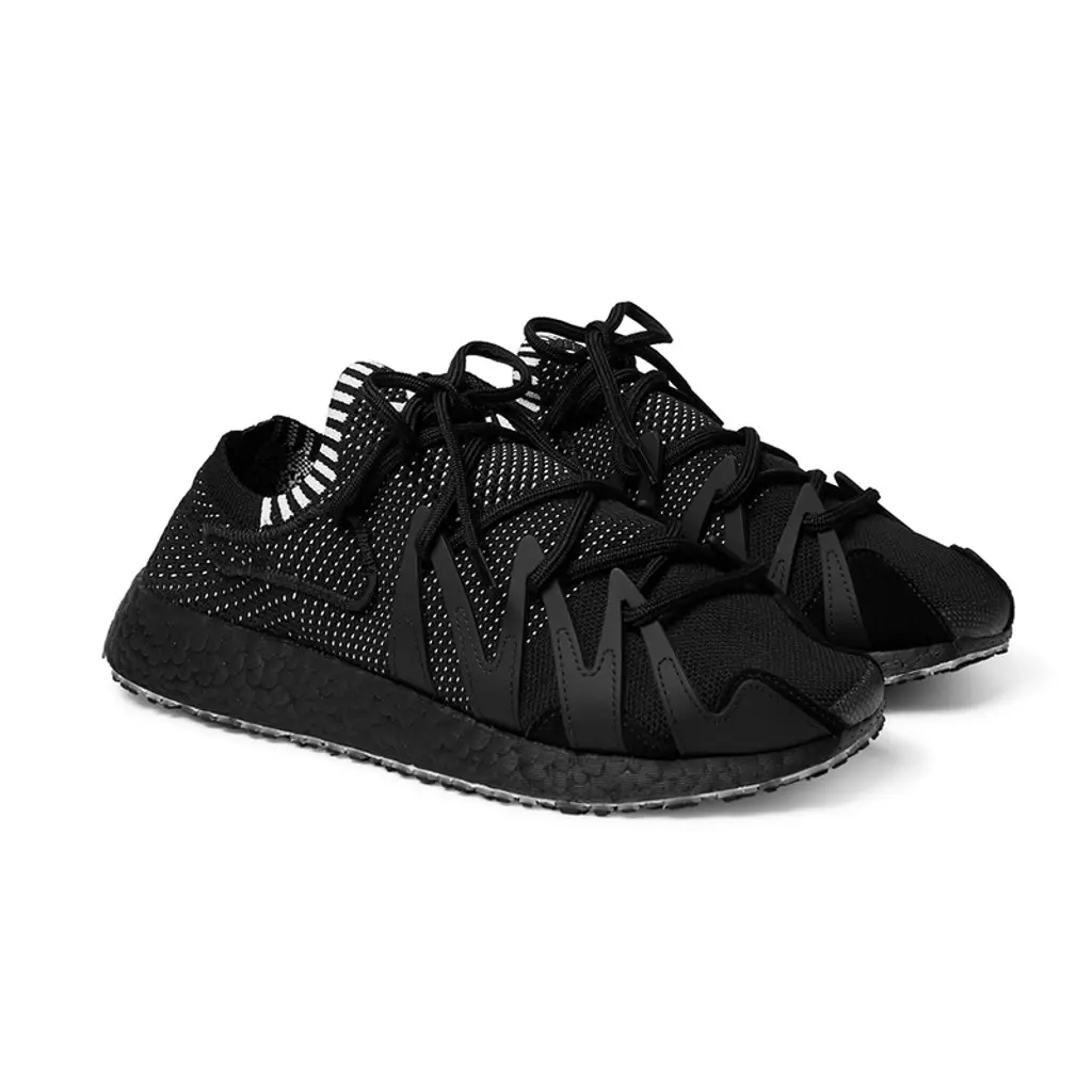 Painted in the Japanese fashion designer’s much loved all black aesthetic, the upper is crafted from a Primeknit construction for a sock like fit, and this is contrasted by tiny specks of white that are peppered throughout. A rubberised cage graces the forefoot, forming the unique lacing system, and a ribbed collar surrounds the wearers ankle for all all day comfort.