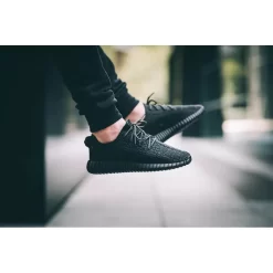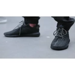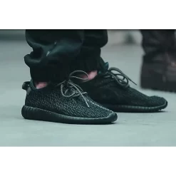 This pair is highlighted in a black based colourway and looks like the low profile comfortable Primeknit version released a month ago which also received the same amount of hype around the world. This black edition features a one-piece upper construction which includes canvas detailing on the heel tab. There is a black leather circle with the YZY branding on the body and the pair sits on top of a boost cushioning powered sole unit.