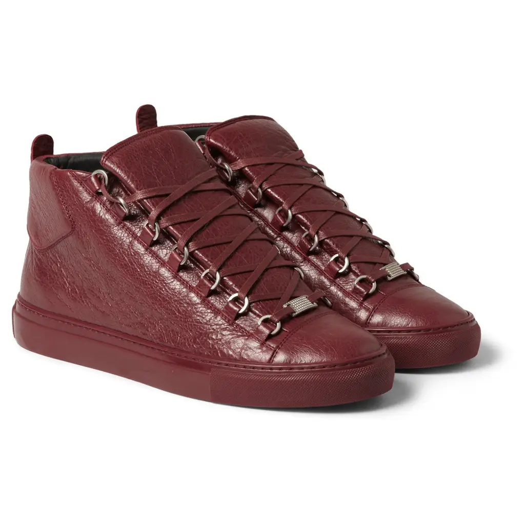 The Arena comes in low top form and this stunning sneaker is delivered in an exclusive Burgundy leather with a nice lace lock which adds a more elite appeal to it.