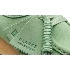 The Clarks Originals Wallabee Pine Green will freshen up your style in an instant! This iteration of the brand’s famous moccasin shoe is dressed in an eye-catching “Pine Green” (light green hue) suede upper. The soft-to-touch base is decorated with clean, visible stitches and comes with matching branded suede hangtags. It has a preppy lace closure that ensures a good fit and a soft inner lining for ultimate comfort. This Clarks Originals Wallabee rounds off with a brown crepe sole.
