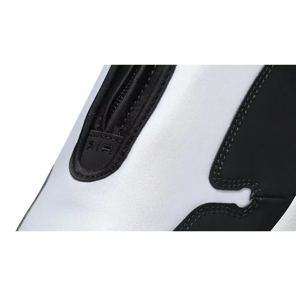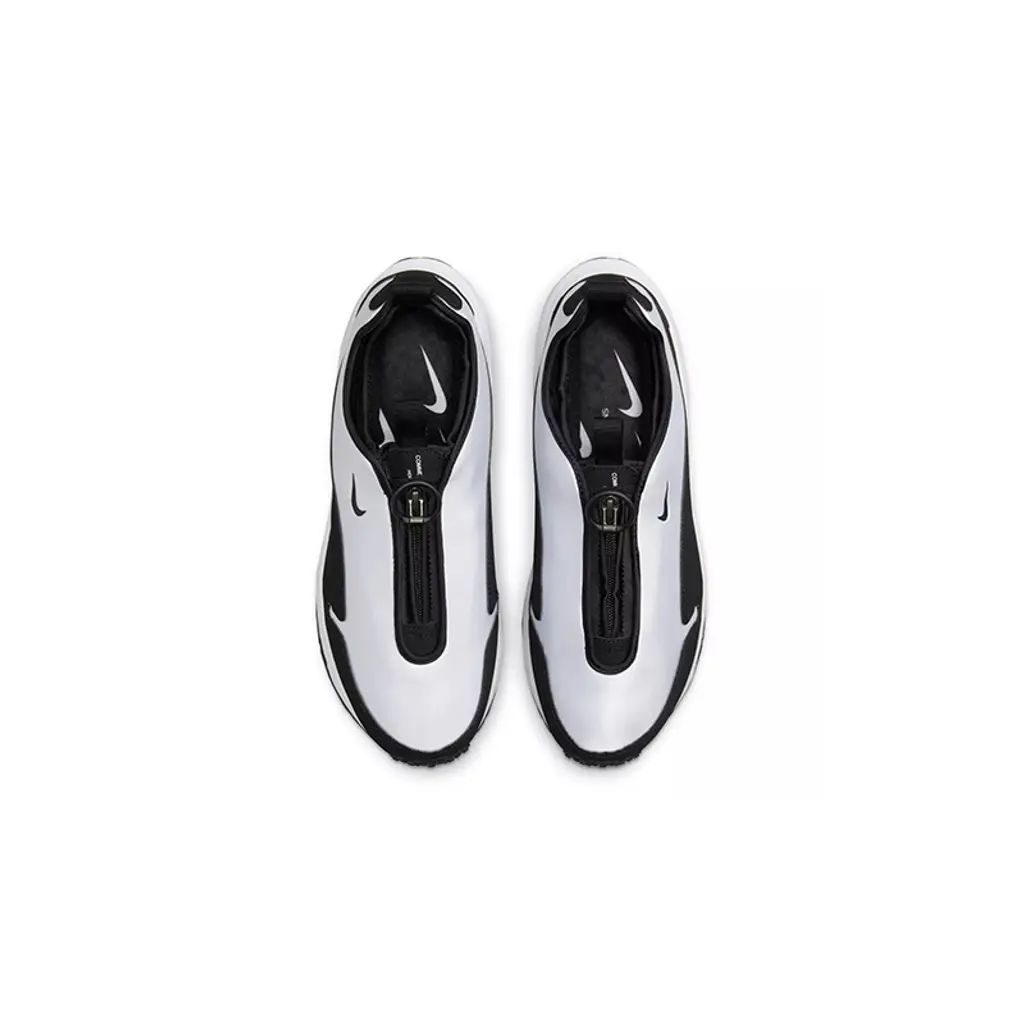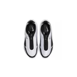 This Air Max has a sleek upper with a white neoprene base and luxe black nubuck overlays. Simple while COMME des GARÇONS text branding can be found on the black nubuck tongue while contrasting mini embossed black Swooshes adorn the lateral side of the shoe. The zipper closure of the shoe has a large circular pull tab in black. A white midsole showing off an exposed Air cassette and a black rubber outsole finish off the style of this shoe.