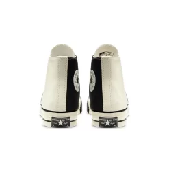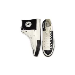 This Converse Chuck 70 High Top version comes in a bold off-white colour-blocking theme for standout street style. The sneaker features an organic white leather and black canvas upper contrasting panels with a signature rubber toe cap and contrast sole.