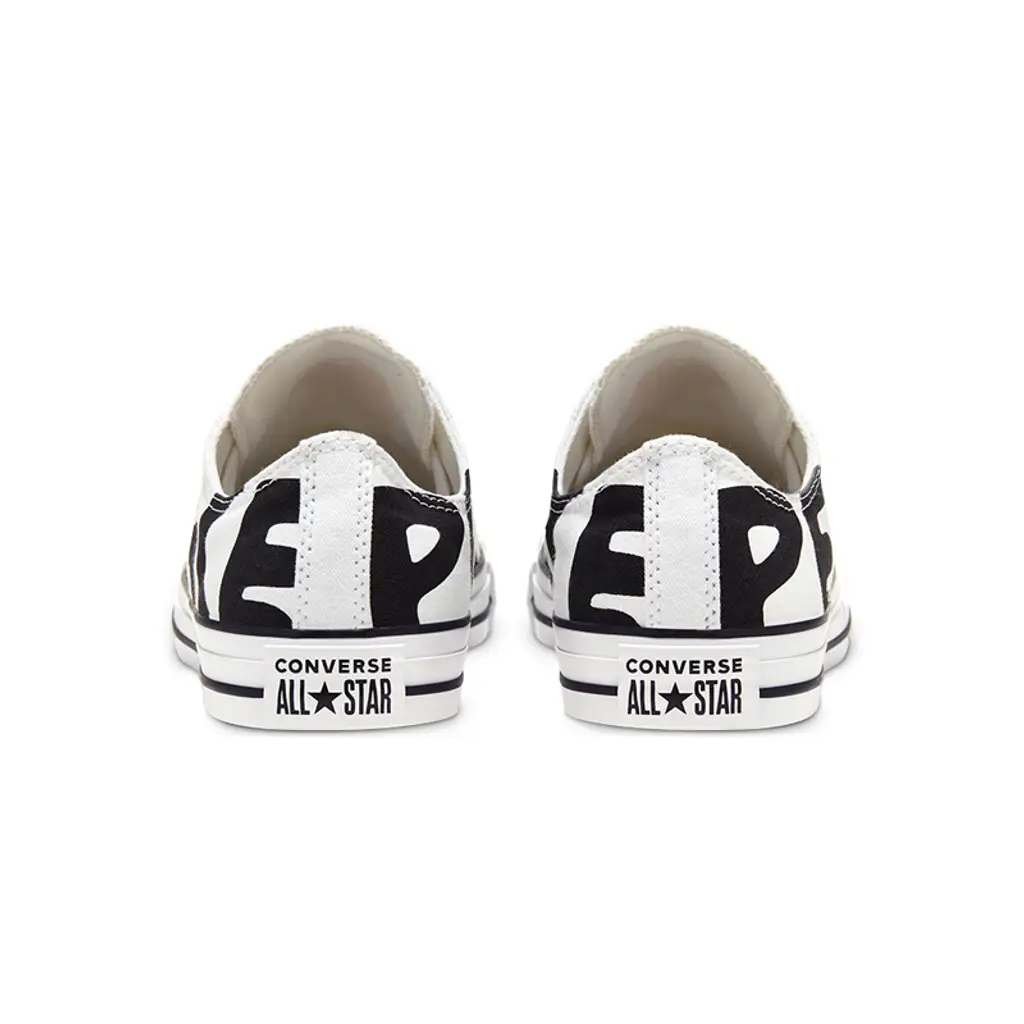 Almost every colourway imaginable has launched over the years but none quite as bold as this All Star “Peace” exclusive. Gigantic lettering across the sidewall instantly grabs attention. Featuring in a black colourway, it’s the perfect contrast to those all white uppers. To balance the look, a plain midsole features along with other iconic details such as the Converse branding which hits both the tongue and heel panel.
