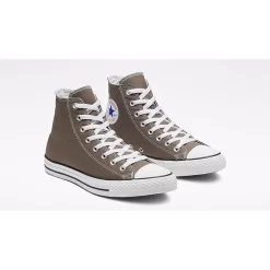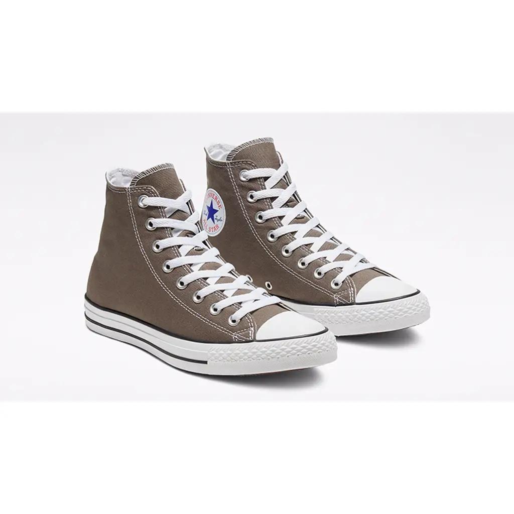 This high-top Chuck Taylor has an all-canvas upper in the titular dark grey Charcoal hue. Everything else you love about this timeless silhouette is intact. The medial eyelets enhanced airflow while the familiar All Star blue and red ankle patch can be found on the medial side. The white midsole has black line accents and a branded rubber heel tab. A diamond-patterned brown rubber outsole completes the look of this sneaker.