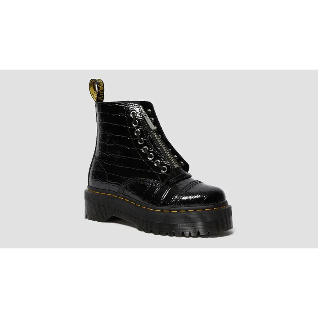 The Dr Martens Sinclair Zip Boots Croc Patent Black is the perfect boot for turning heads – whether that’s at a festival or simply just in your off-duty get-up.